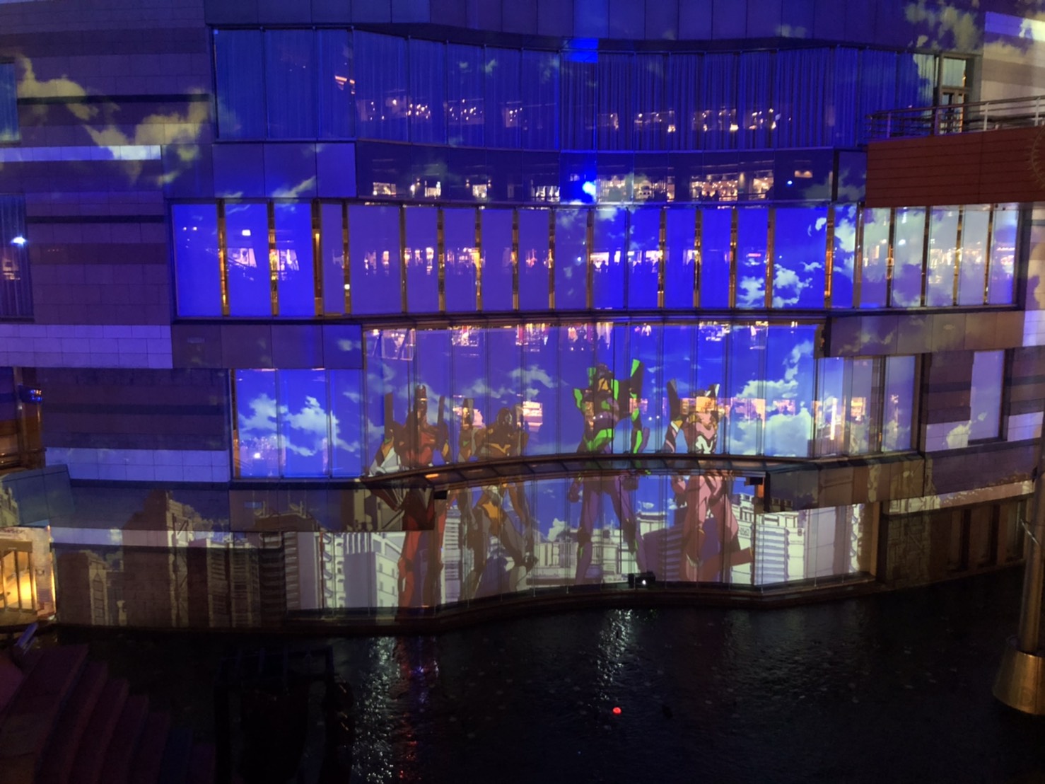 先日キャナルシティに行ったときに丁度エヴァンゲリオンの噴水ショーがあってました(^^)/