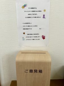 そんな時は!近くにメモ用紙をご用意しておりますのでご意見、ご要望など小さなことでも結構ですので記入しこのご意見箱に入れてください(*’▽’)✨